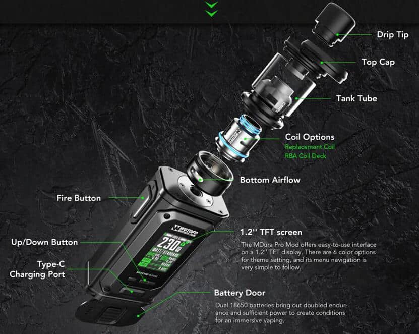 Crafted from premium materials, the MDura RDTA ensures durability and reliability, making it a long-lasting addition to your vaping setup. The top-fill design simplifies the refilling process, minimizing mess while maximizing convenience. Plus, the leak-proof construction allows you to vape worry-free, whether at home or on the go.